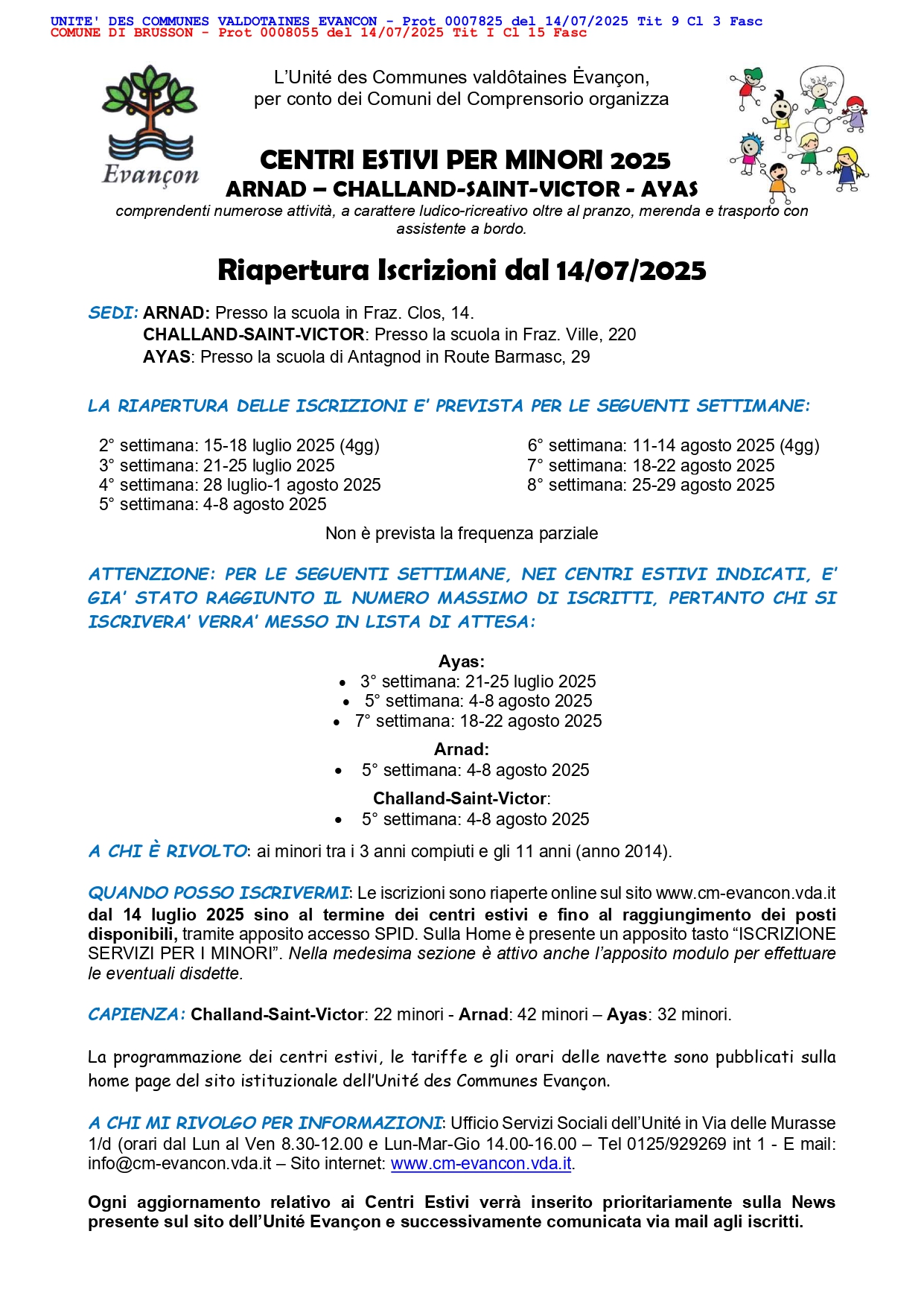 Ogni aggiornamento relativo ai Centri Estivi verrà inserito