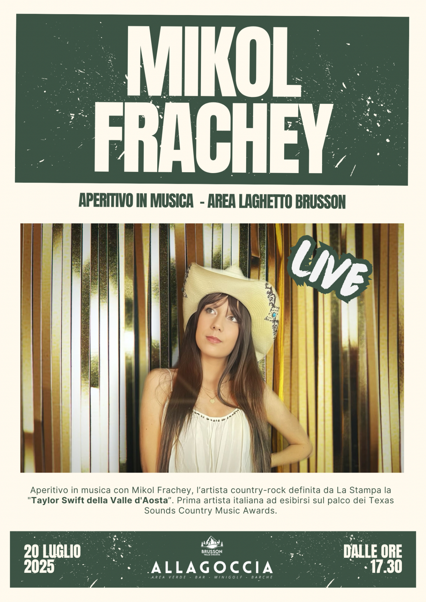 Aperitivo in musica con Mikol Frachey, l'artista country- rock