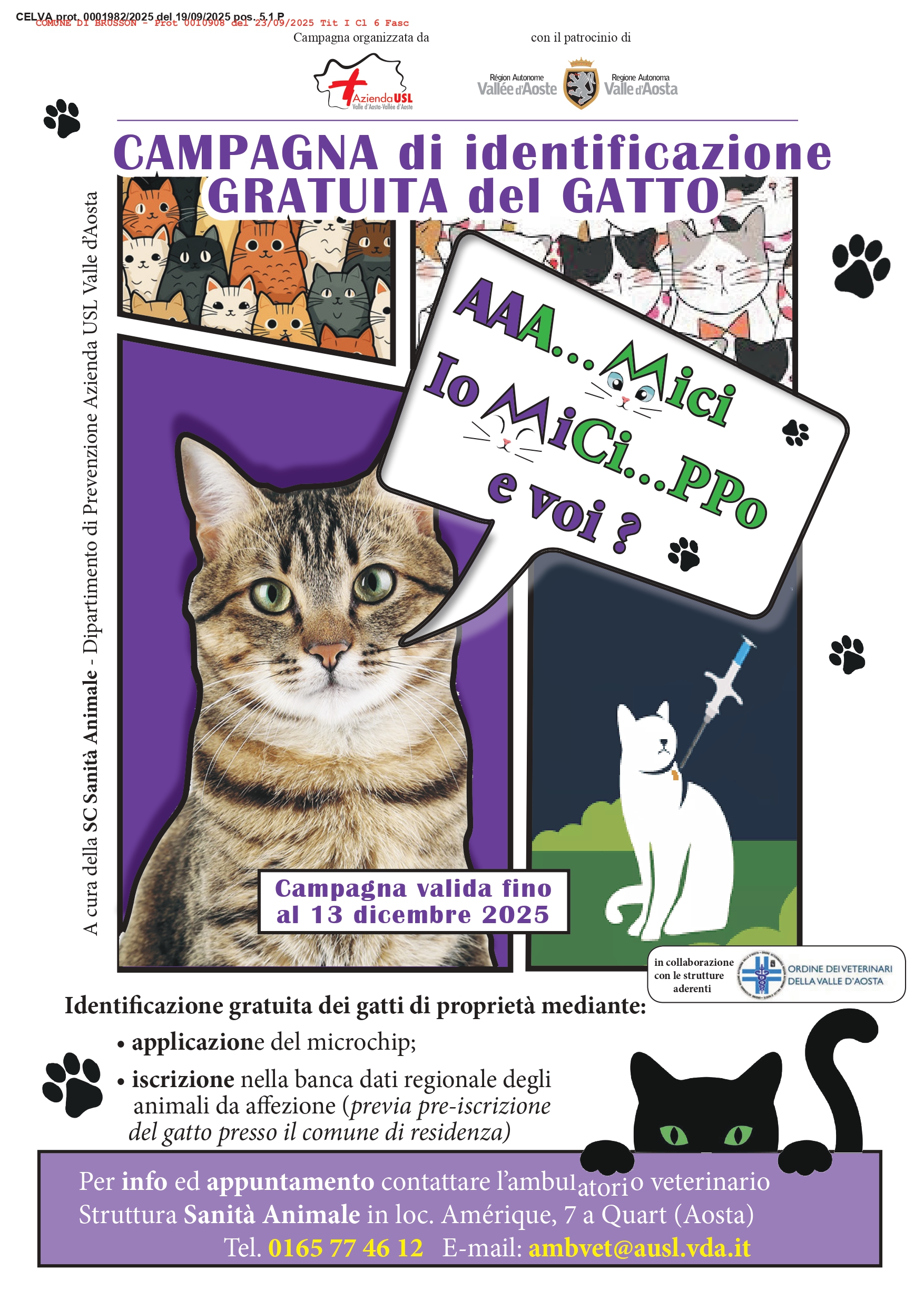 Campagna di identificazione gratuita dei gatti di proprietà mediante: