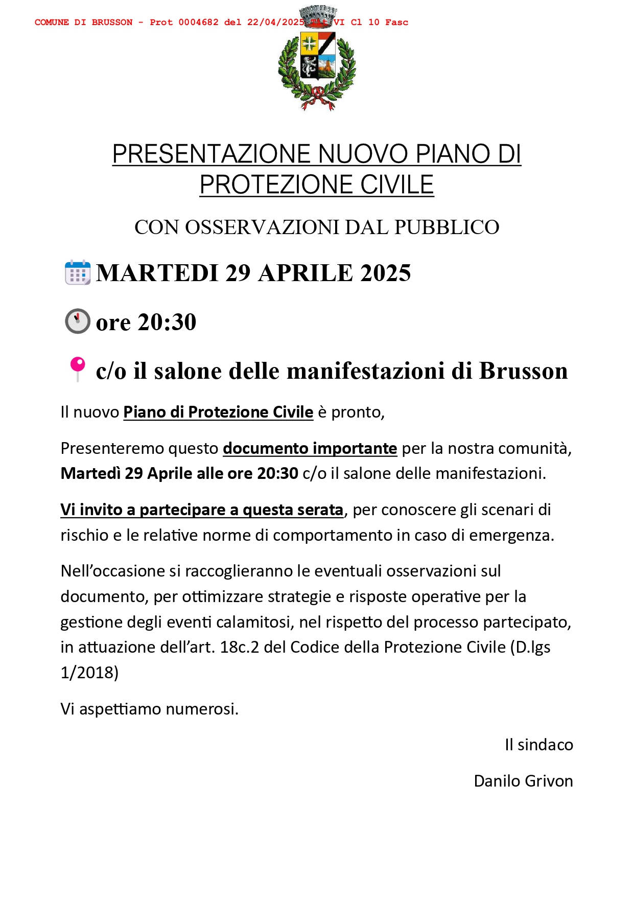 Il Nuovo Piano di Protezione Civile è pronto.