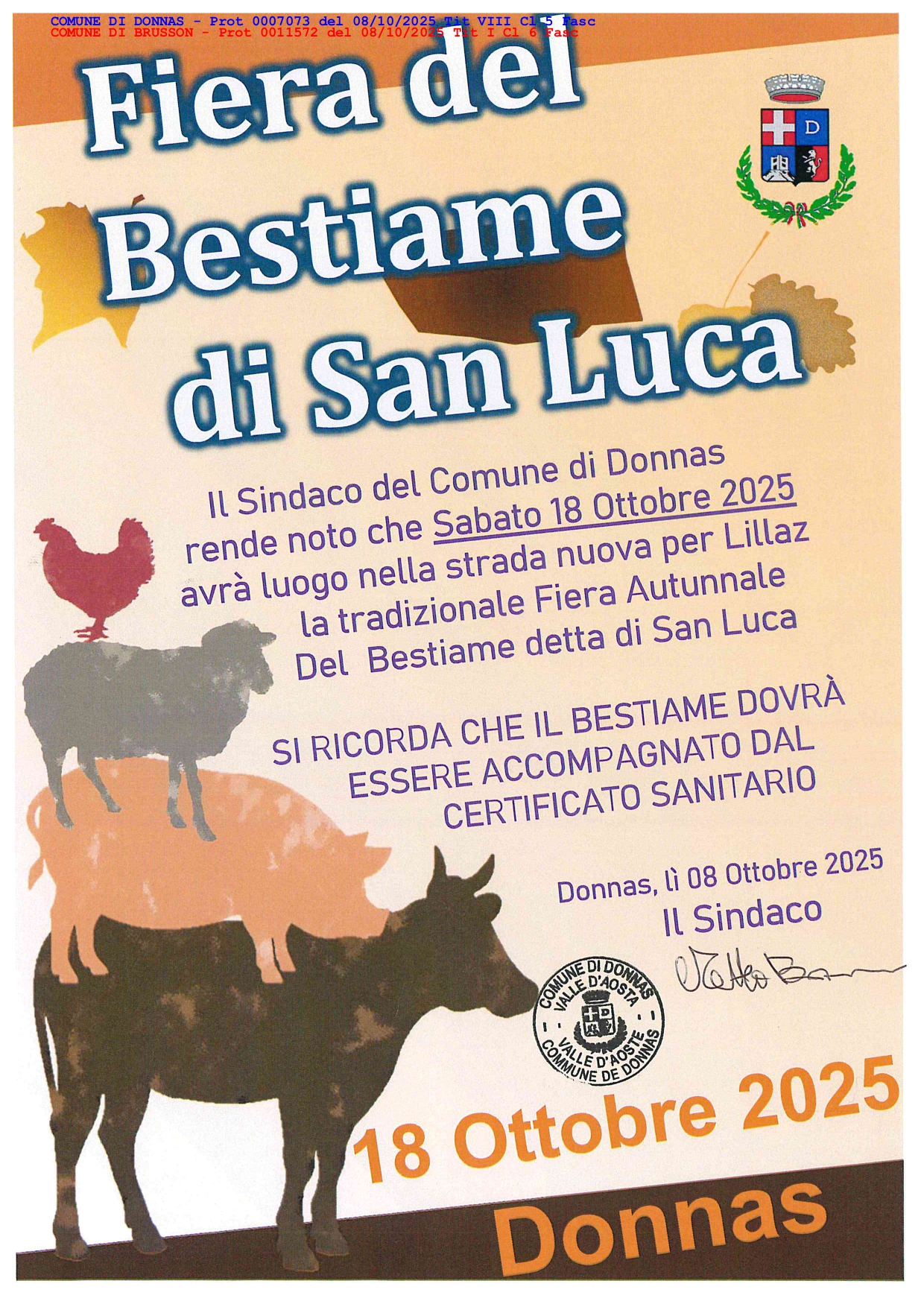 Il Sindaco del comune di Donnas rende noto