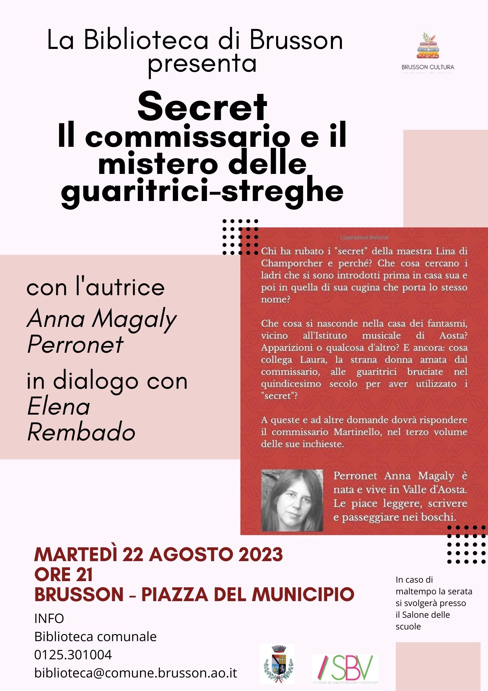 In caso di maltempo la serata si svolgerà presso il Salone delle scuole