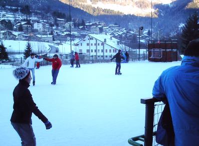 La pista è di ghiaccio naturale, all’aperto, la più grossa della valle (1300 mq).