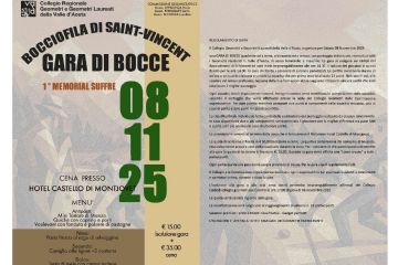 Il Collegio Geometri e Geometri Laureati della Valle d'Aosta, organizza per Sabato 08 Novembre 2025 una Gara di Bocce Ogni partecipante alla gara dovrà essere provvisto di bocce.