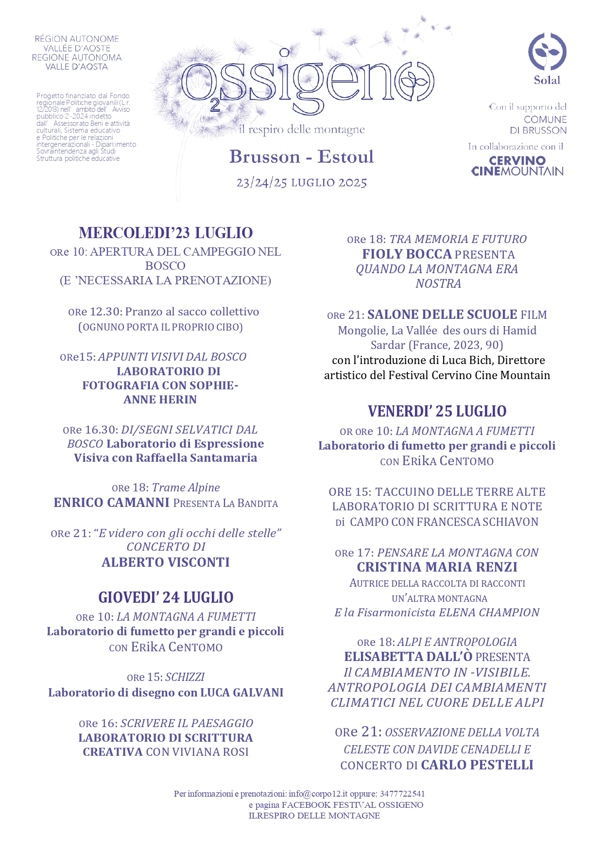 Si comunica che a causa delle previsioni meteo incerte i seguenti eventi si svolgeranno presso il salone delle manifestazioni delle scuole di Brusson: