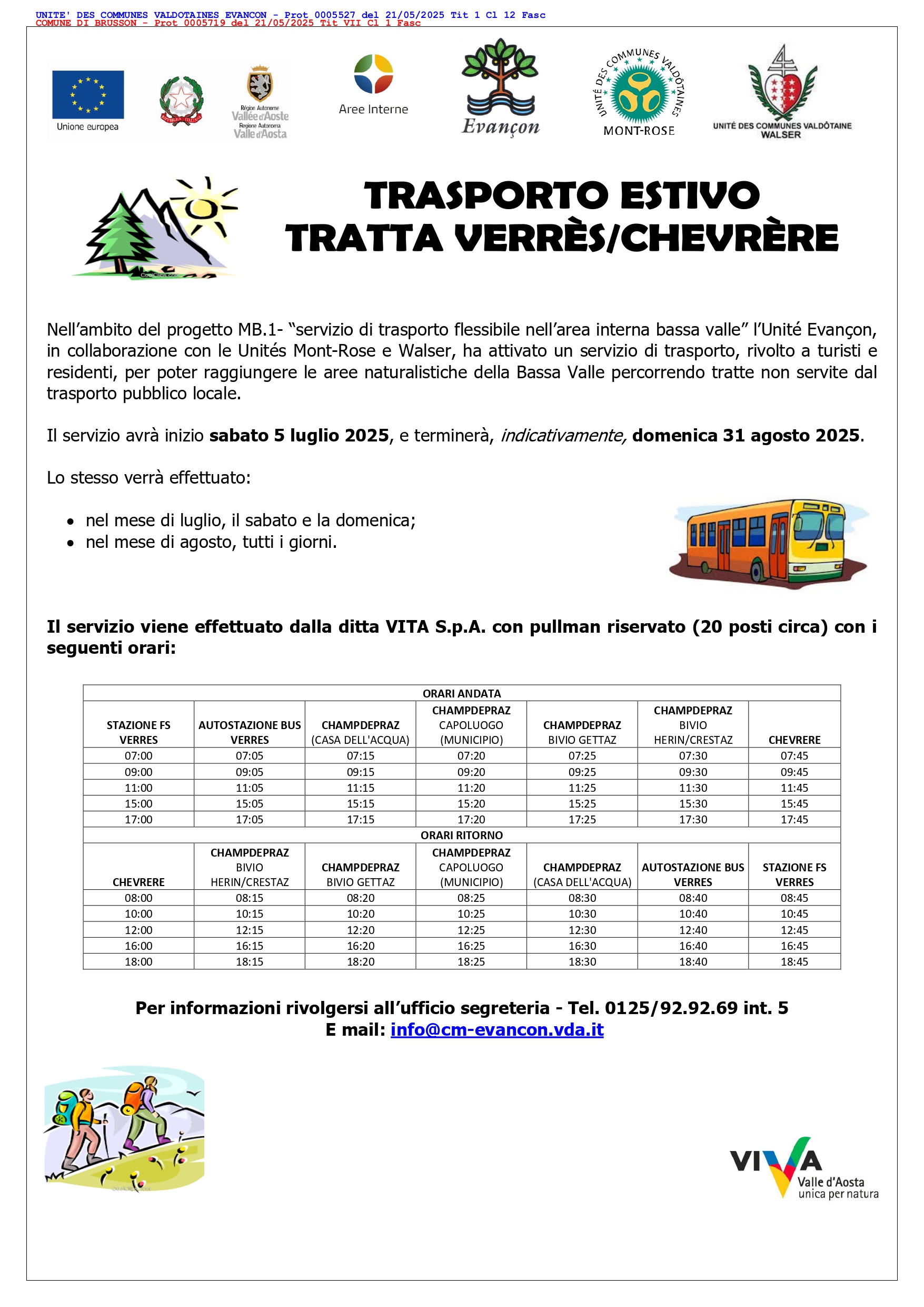 TRASPORTO ESTIVO TRATTA VERRÈS/CHEVRÈRE