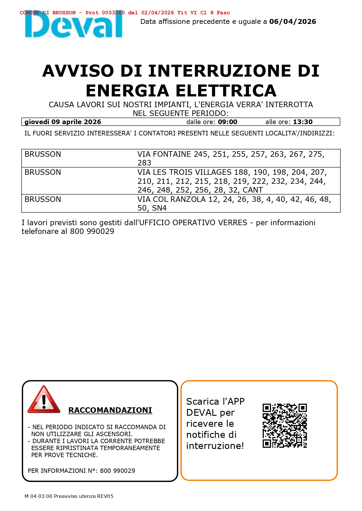 AVVISO DI INTERRUZIONE DI ENERGIA ELETTRICA